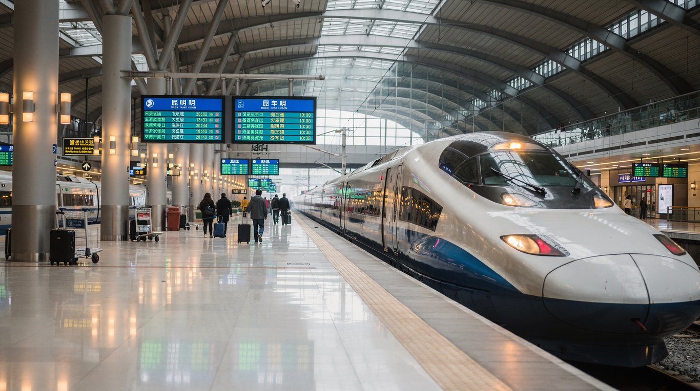 Una vez en Yunnan, la red de tren de alta velocidad es tu mejor amiga. Kunming a Dali toma 1,5–2 horas; Kunming a Lijiang alrededor de 3–4 horas; Lijiang a Shangri-La aproximadamente 1,5 horas en tren. Los billetes de segunda clase cuestan €7–37 dependiendo de la ruta. Según ChinaHighlights, alrededor de 12 pares de trenes diarios operan solo en el corredor Kunming–Lijiang — no se requiere planificación anticipada para flexibilidad.