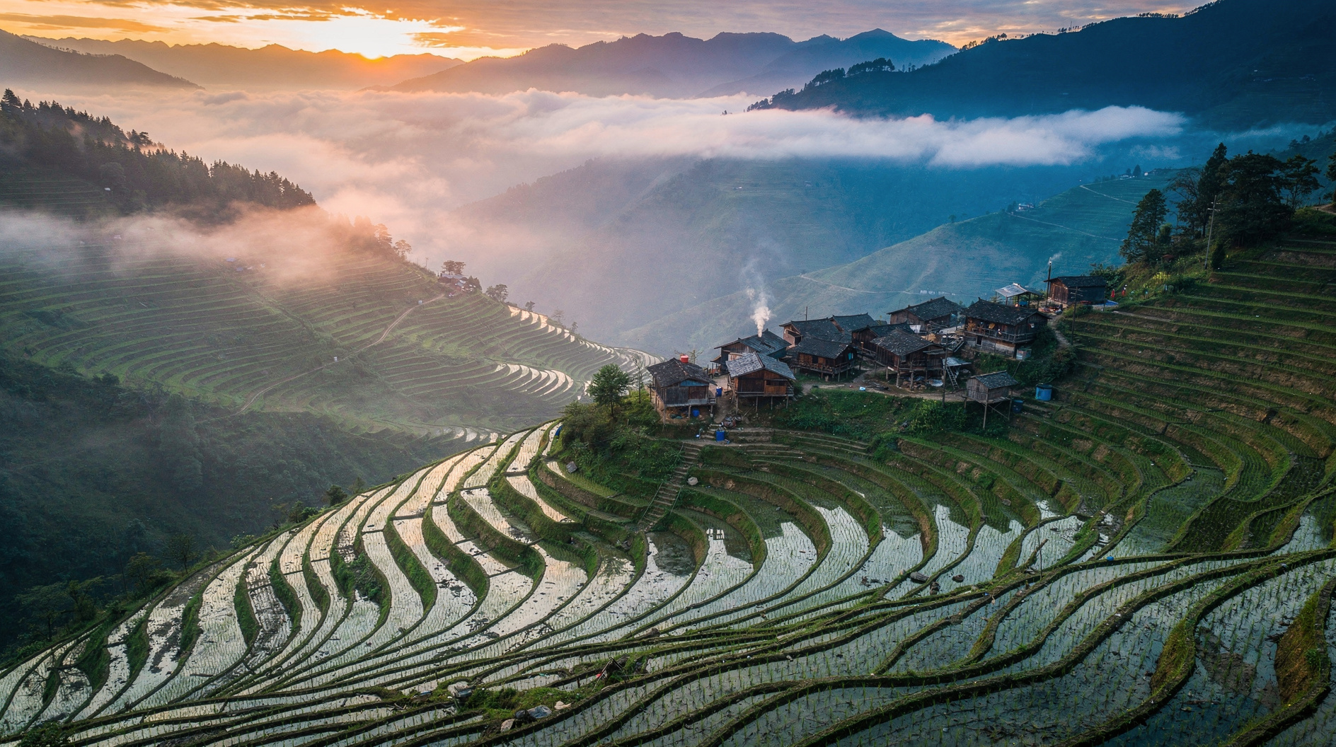 Los mejores puntos de vista están en Duoyishu para el amanecer (llega antes de las 6 am en invierno para la luz de la mañana llena de niebla), Bada para la puesta de sol, y Laohuzui (Boca de Tigre) para el barrido panorámico más dramático. Quédate al menos dos noches, idealmente en Duoyishu mismo donde las casas de huéspedes tienen balcones con vista a las terrazas.